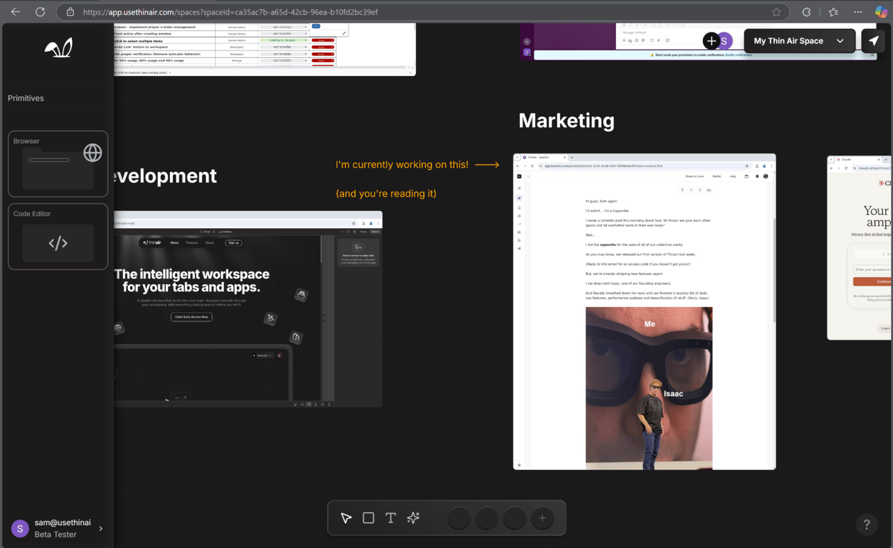 I made a LinkedIn post this morning about how “At thinair we give each other space and let eachother work in their own lanes”